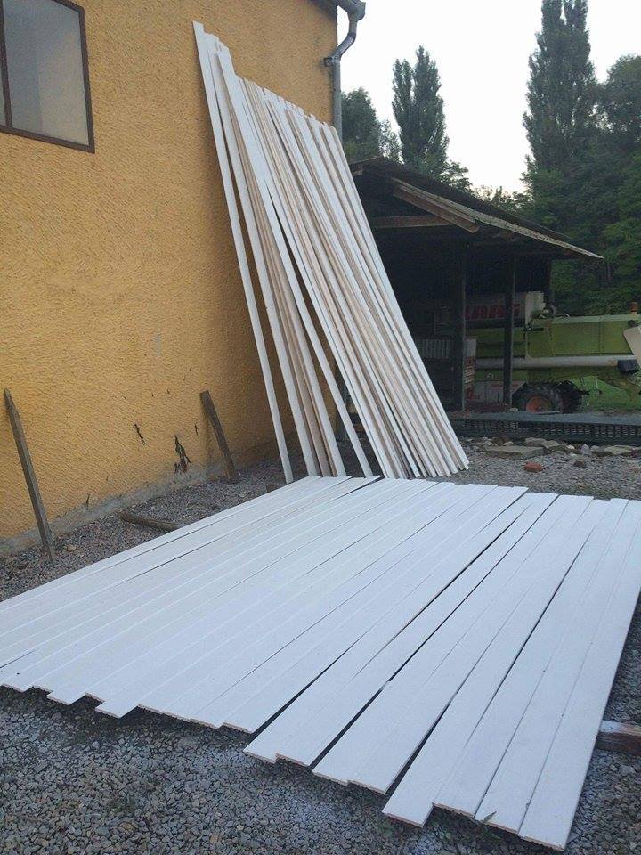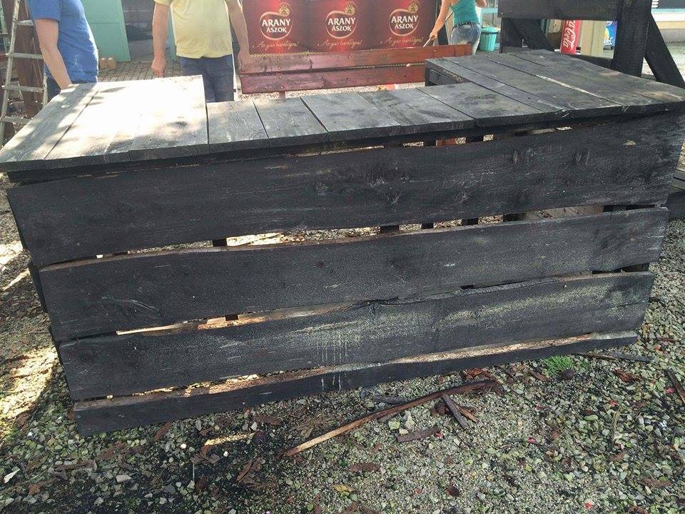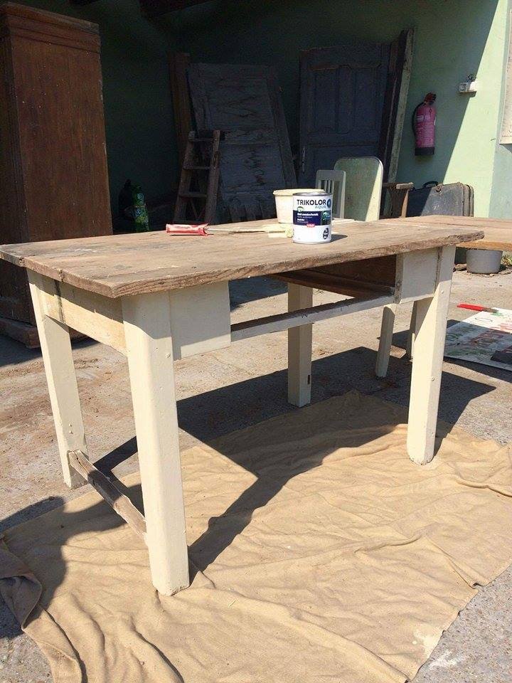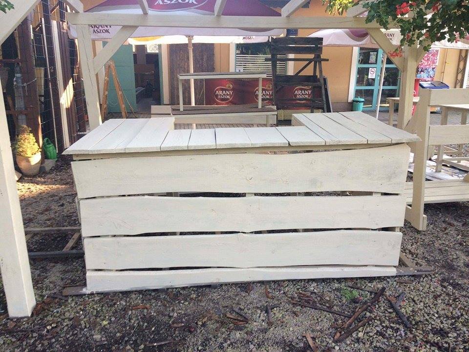 Persze egy pultra is szükség van, amit deszkákból kalapáltunk össze és természetesen krémszínűre le is festettük.